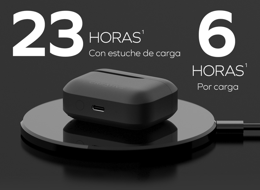 1Basado en un nivel de volumen moderado. La duración real de la batería variará según la configuración de uso y las condiciones ambientales.