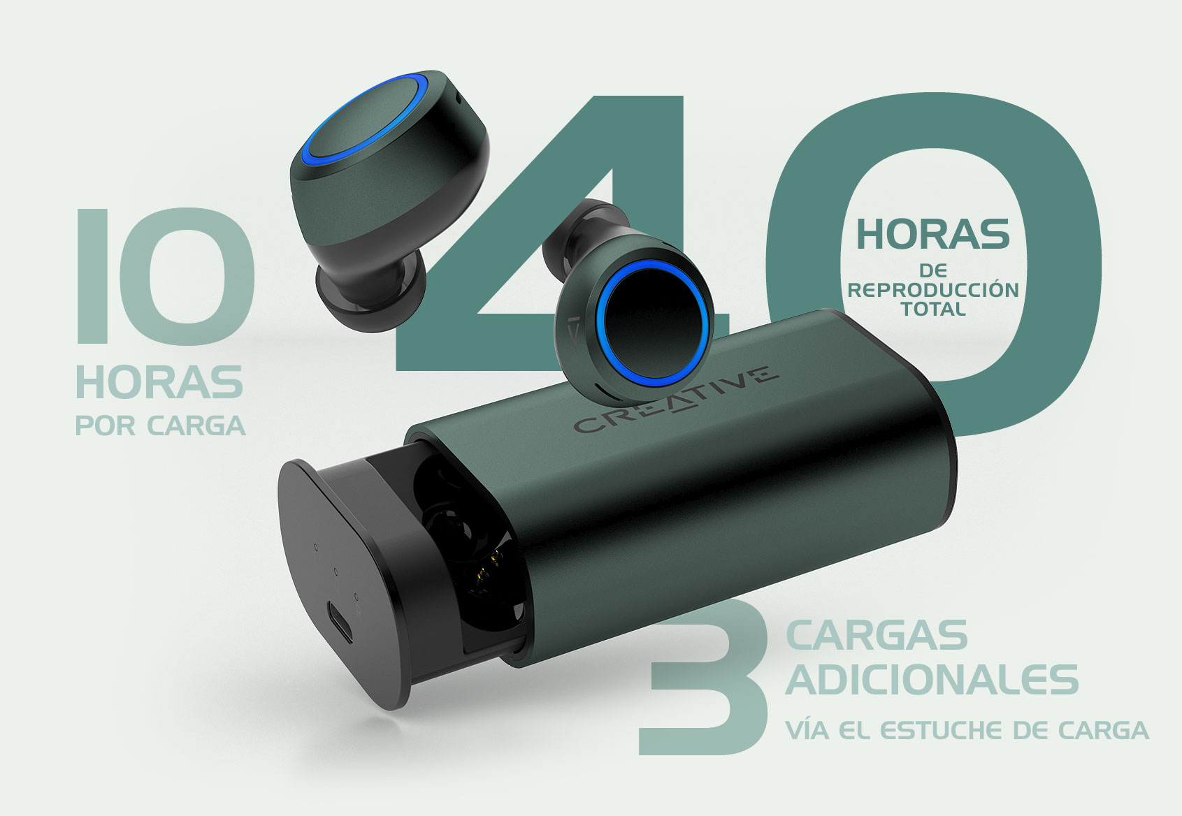 Mejorado para alimentar hasta 40 horas de tiempo de reproducción total con 10 horas por carga, Creative Outlier Air V3 encabeza la serie en rendimiento de batería. Hemos aumentado las apuestas con nuestras funciones de control de ruido más nuevas, botones de control táctil personalizables y micrófonos quad para la claridad de las llamadas, todo diseñado para la mejor experiencia inalámbrica verdadera.