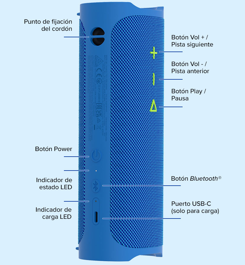 Con un puerto conector USB-C a prueba de agua, recargar el Creative MUVO Go es sencillo y sin preocupaciones.
