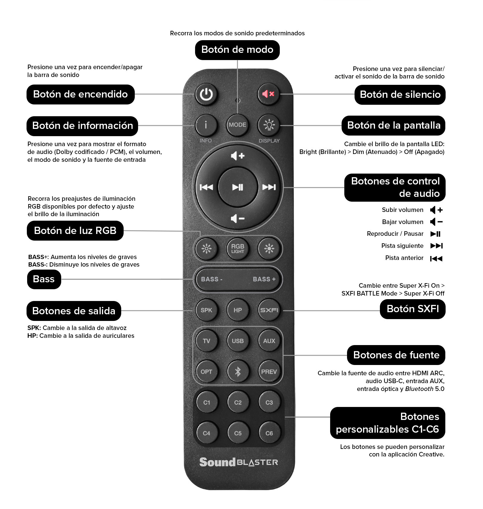 La barra de sonido Sound Blaster Katana SE también es muy versátil, dado que incorpora una gran cantidad de puertos y opciones de conectividad que van desde audio USB, HDMI ARC, Bluetooth®5.0 para streaming de audio inalámbrico, entrada óptica, salida SXFI, toma de auriculares y una entrada AUX de 3.5 mm para audio analógico. La barra de sonido también se puede instalar en la pared, por lo que también se puede colocar debajo del televisor.