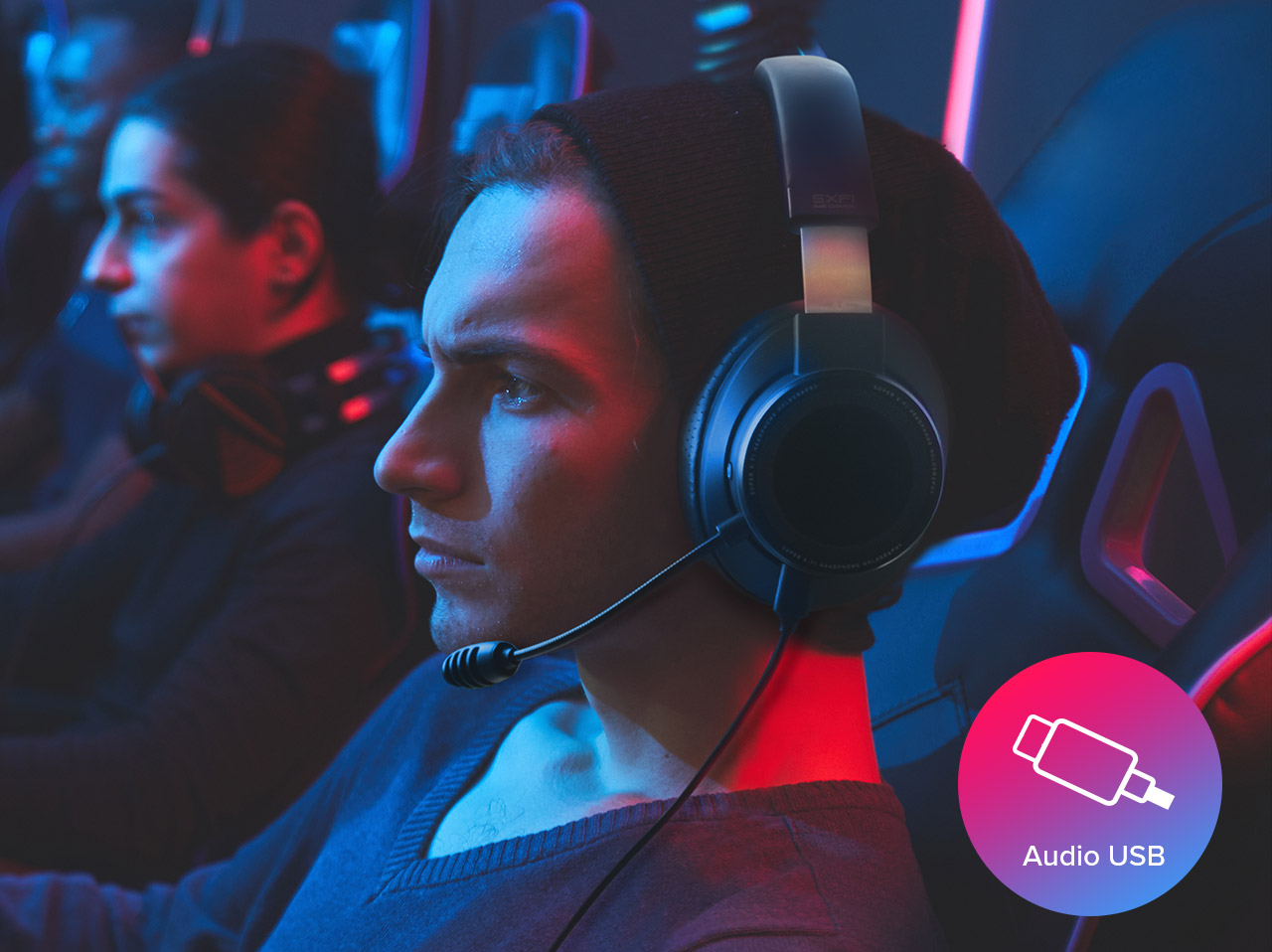 Y aún hay más: con GamerChat, puede preservar la calidad de sonido de la inmersión holográfica de audio 7.1 sin perder detalles acústicos. Al mismo tiempo, las fuentes de audio están posicionadas con precisión y sobrecargadas con la Super X-Fi Headphone Holography para conseguir los mejores efectos cinematográficos. El efecto espaciado neutraliza la fatiga de cascos que suele acompañar a las largas sesiones de juego para mejorar por completo la jugabilidad general. ¡Basta con cambiar al modo GamerChat a través del botón Fuente ubicado en los cascos con micrófono para disfrutar de esta función!