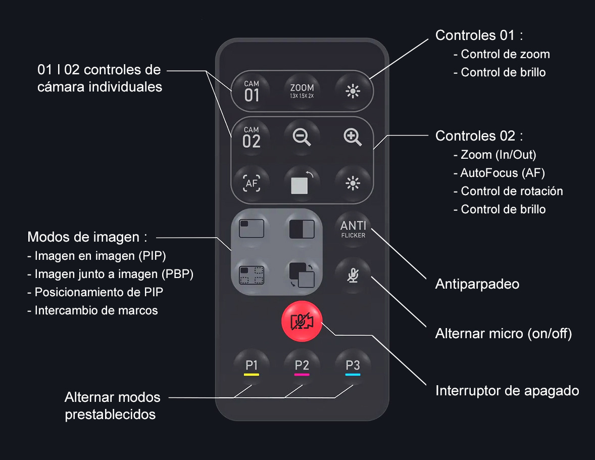 Al combinar el poder de las cámaras duales y nuestro mando a distancia de diseño intuitivo, ahora puede cambiar sin problemas de un ángulo de cámara a otro con solo presionar un botón. Esta característica es especialmente beneficiosa para los creadores de contenido que deseen brindar una experiencia de visualización más dinámica y profesional a sus seguidores y es especialmente útil para los creadores que organizan eventos en vivo como transmisiones de juegos, entrevistas en vivo o programas de venta en vivo.